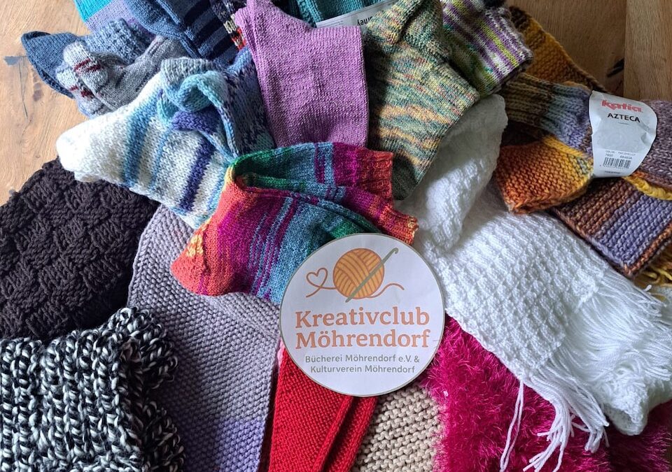 Im Sommer erhielten wir vom Hospizverein Erlangen e. V. eine Anfrage, ob wir für den diesjährigen Weihnachtsbasar ein paar Herrensocken stricken könnten. Natürlich waren alle Strickerinnen des Kreativ Clubs sofort an den Nadeln. Bis Ende Oktober kamen